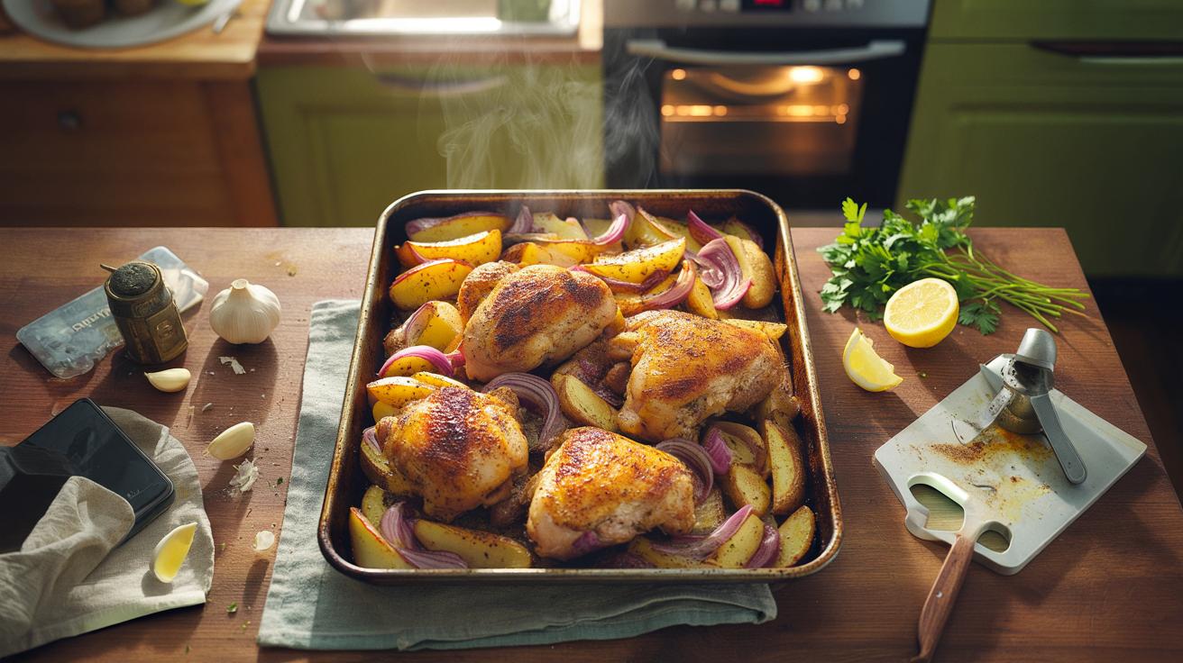 One Thursday, I remember walking in the door at 6:25 p.m., already hungry and already tired. The kind of tired that makes the idea of chopping onions feel like an Olympic sport. I pulled out the usual suspects: 4 chicken thighs, 3 small potatoes, half a red onion, a lemon that had seen better days, and a garlic bulb.